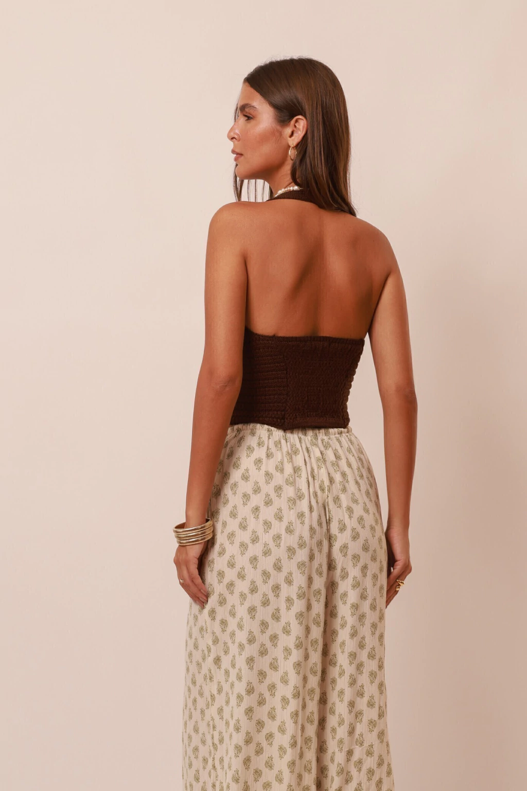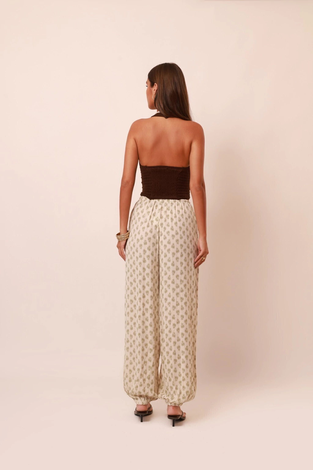 Calça Aladin, confeccionada em Viscose com aspecto plissado, estampada com fio de Lurex dourado. Possui cós de elástico com regulagem, modelagem ampla e fluida que afunila com elásticos no tornozelo, valorizando o movimento natural da peça. Use com o nosso Kimono Eva para um look moderno, elegante e cheio de charme. Aposte nesse visual perfeito para usar junto ou separado.
