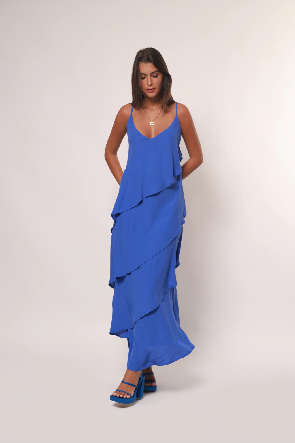 Nosso Vestido Olímpia é ideal para graças especiais. Com alcinhas reguláveis e um decote que valoriza o colo com sensualidade suave, possui uma modelagem soltinha e babados que trazem movimento ao vestido, dando um "ar" de frescor ideal para o clima brasileiro. Em tom de azul frio, ficou perfeito para te acompanhar em momentos especiais. Para usar em diferentes graças, combine com acessórios, calçados e bolsas e veja o potencial de hardware possível para os mais diversos