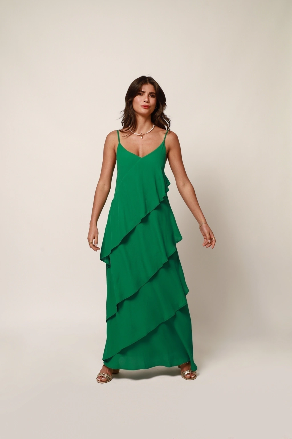 Nosso Vestido Olímpia é ideal para ocasiões especiais. Com alcinhas reguláveis e um decote que valoriza o colo com sensualidade suave, possui uma modelagem soltinha e babados que trazem movimento ao vestido, dando um "ar" de frescor ideal para o clima brasileiro. Para usar em diferentes ocasiões, componha com diferentes acessórios, calçados e bolsas e veja o potencial de combinações possíveis para os mais diversos momentos. O Vestido Olímpia pode te acompanhar desde um almoço descontraído até um evento que pede mais elegância, uma peça versátil demais.